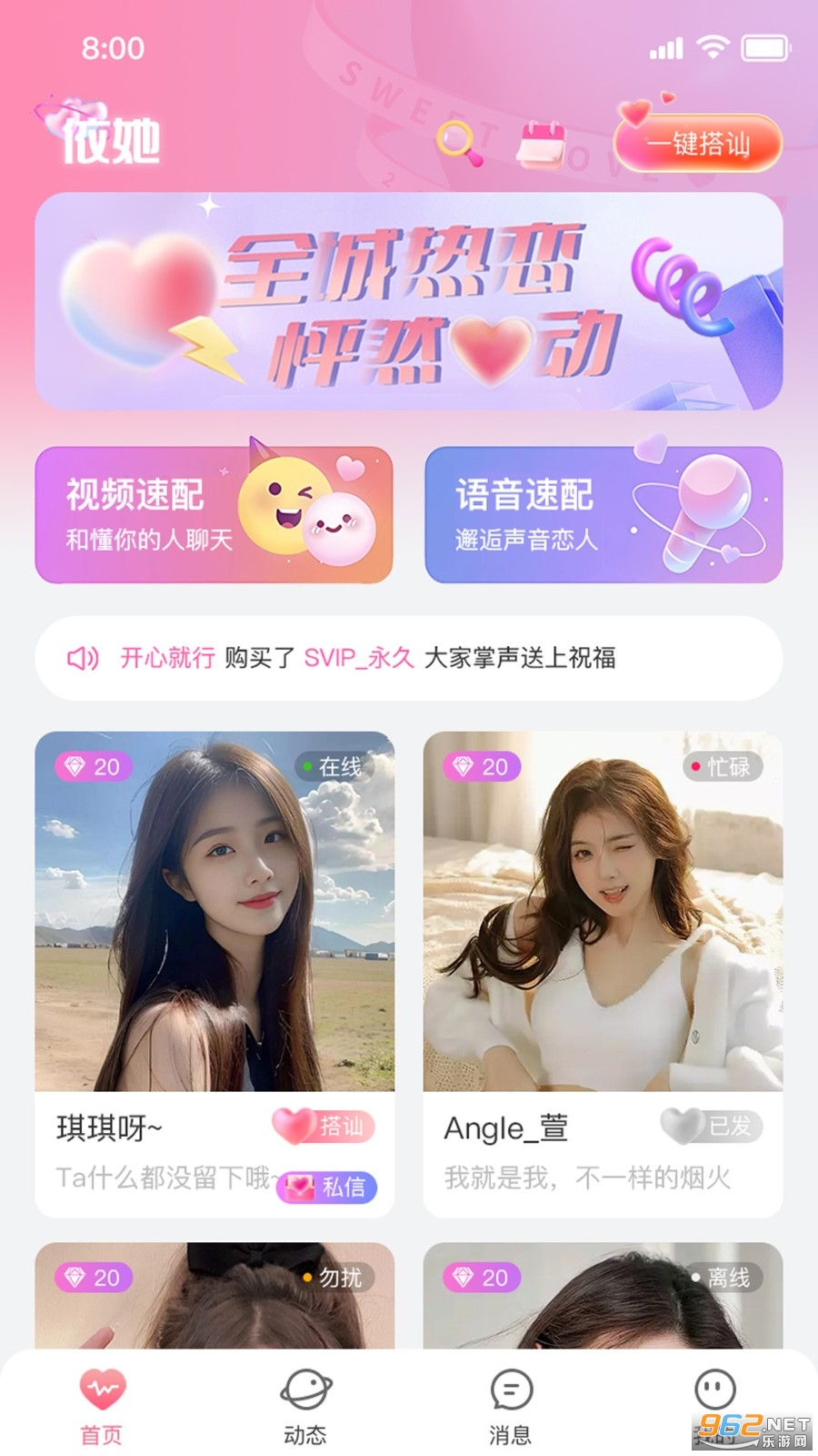 一款十分实用的手机交友服务软件,具备丰富的交友功能与多样互动形式,能让用户在寻觅新朋友时更便捷高效。该应用也十分重视用户的隐私与安全保障,采用实名验证机制,让用户在互动交流时更安心。另外,依她还推出了趣味相亲活动,为用户创造了结识新朋友的契机。总的来看,依她交友App是一款很值得体验的交友应用。
