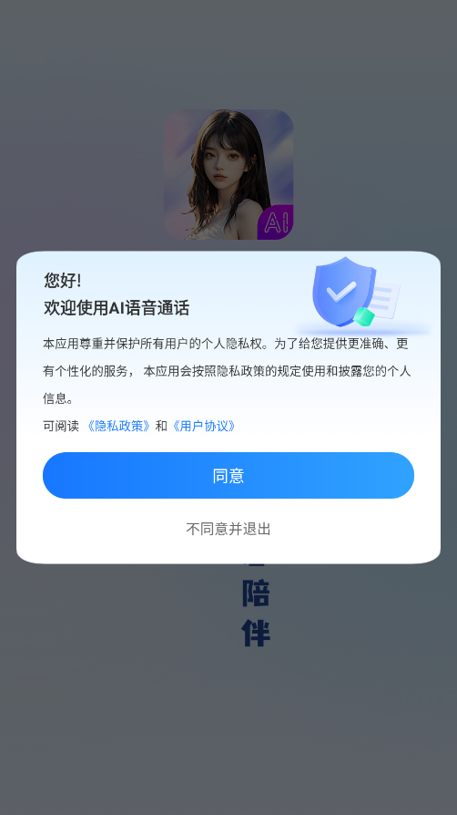 1、安装AI语音通话软件,在同意相关政策与协议后将其打开。