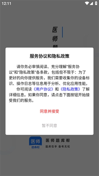 2、阅读并确认用户协议与隐私政策,点击同意接受。