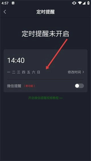 3、进入【定时提醒】页面后,若看到“定时提醒未开启”的提示,点击【修改时间】选项,即可进入时间与日期的调整界面。