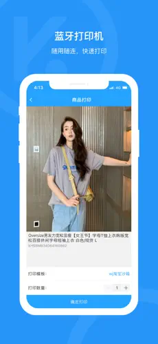 4、连接蓝牙打印机,打印订单标签、商品条码、吊牌,支持连续扫码打印与图片打印。