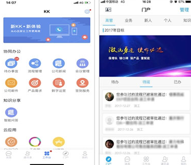 KK7办公软件是深度集成 OA、BPM 等多种业务系统。核心设有一站式协作中心,支持单聊、群聊等多种沟通方式,轻松处理审批、日程等日常办公事项,大幅提升企业办公流转效率!