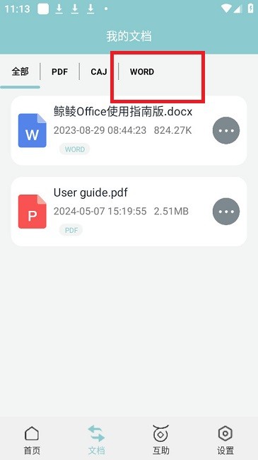 3、最后读取文档后,选择word格式即可转换成word