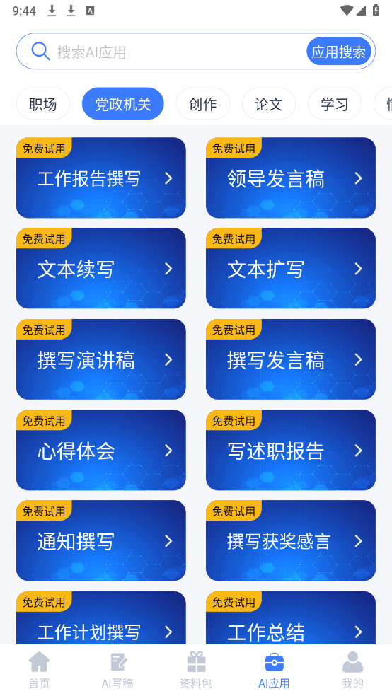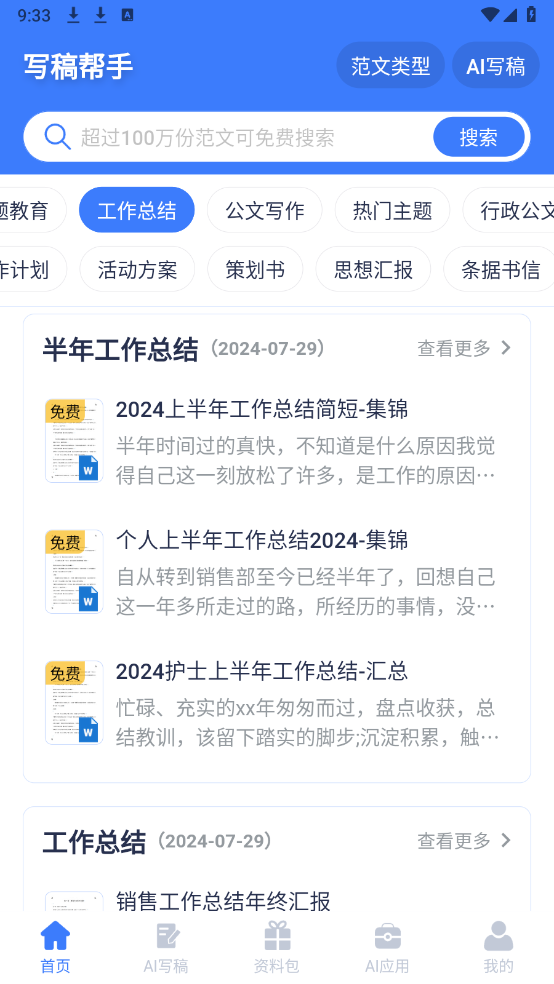 进入首页后,会看到平台提供了丰富多样的范文,涵盖多种类型,你可以通过关键词搜索功能找到自己需要的内容。