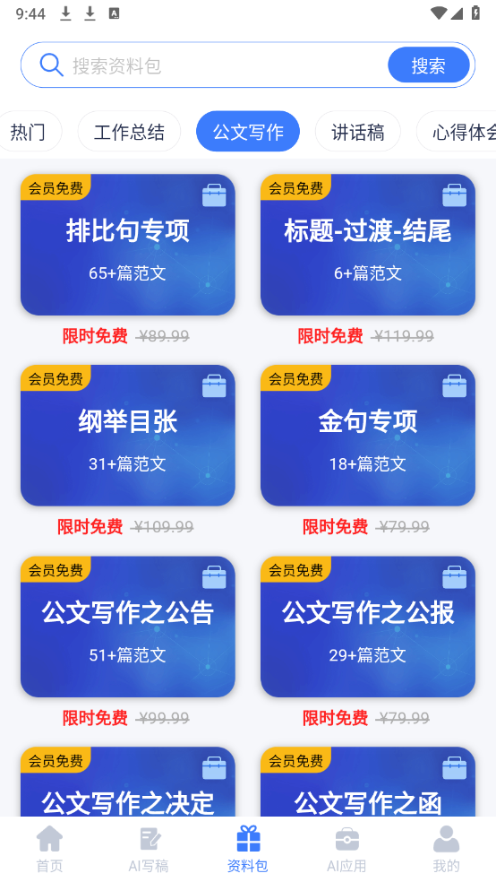 4、“资料包”和“AI应用”这两个板块里,收集了不少资料,其中部分内容需要成为会员才能查看。
