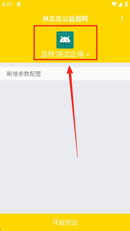 1、打开软件后,我们需要在首页点击“选择测试应用”。