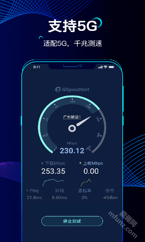1、精准测速不仅支持WiFi网络测速,还支持2G/3G/4G/5G等移动网络测速,满足用户在不同网络环境下的测速需求。