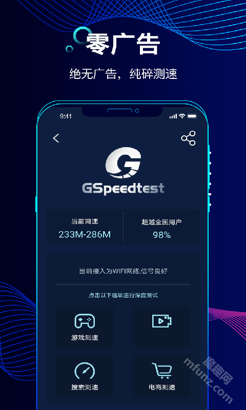 5、作为授权并完全按照工信部行业标准开发的专业测网速工具,精准测速承诺骚扰,为用户提供纯粹的测速体验。