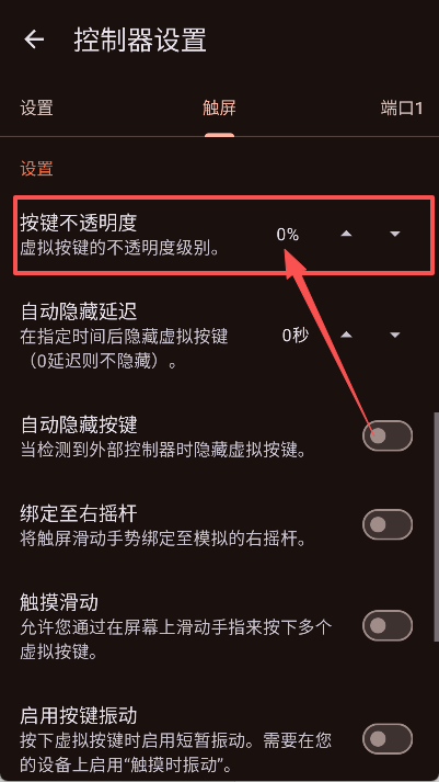 5、向下滑动,将“按键不透明度”设为0即可隐藏。