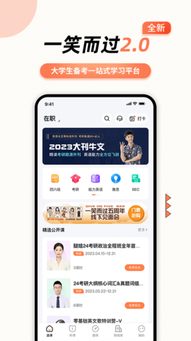一笑而过是海南一笑而过科技有限公司打造的备考辅导应用,专注为国内百万大学生群体提供四六级、考研、英语学习、专四专八及雅思考试等方面的助力与指导。该平台创始人周思成曾是深受学生欢迎的新东方名师,凭借卓越的教学水平与扎实的学术功底,为平台积累了优质口碑和广泛影响力。作为资深备考专家,周思成深刻理解学生备考时遭遇的迷茫与压力,故而投身研发能够切实解决备考难题的应用产品。