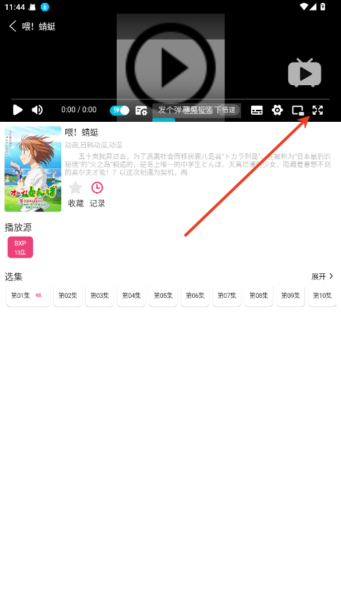 2. 在影片播放的界面上,点击右下角的放大按钮就行。