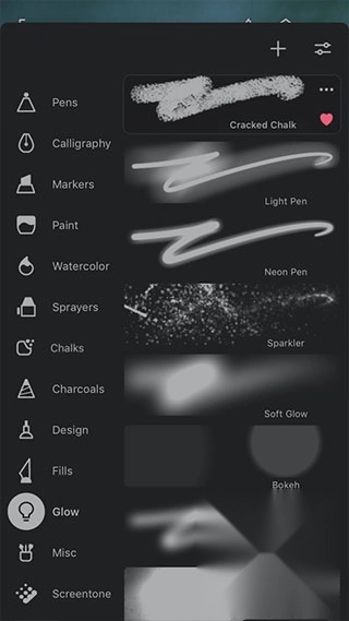 1、选择笔刷:点击画笔图标就能完成选择;添加笔刷:按下“+”键,既可以从社区获取分享的笔刷,也能自行制作添加。
