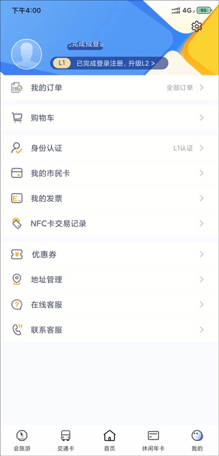2、登录账号成功后,点击“我的”,再点击左上方显示的“L1”进入对应页面,完成L2认证(需注意,只有通过L2认证才能办理相关业务)