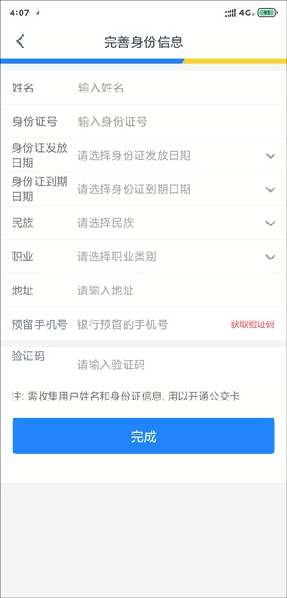 3、完善你的身份信息,获取验证码,完成实名认证