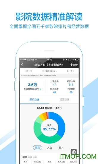 全国影院票房排行榜,可查询超5500家影院的场次信息与经营数据。