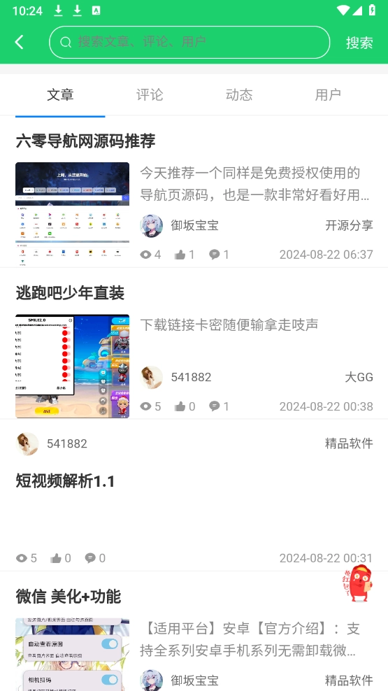 葫芦猫社区是一个专注于资源交流与分享的平台,这里汇聚了丰富多样的资源内容,涵盖软件分享、技术交流以及各类知识技巧等多个领域,能够满足不同用户的多样化需求。用户还可以根据自己的兴趣加入相应圈子,从而获取更多学习机会与知识拓展。此外,社区内的所有资源都在持续进行更新与优化,如果你正好需要,不妨前来探索一番。