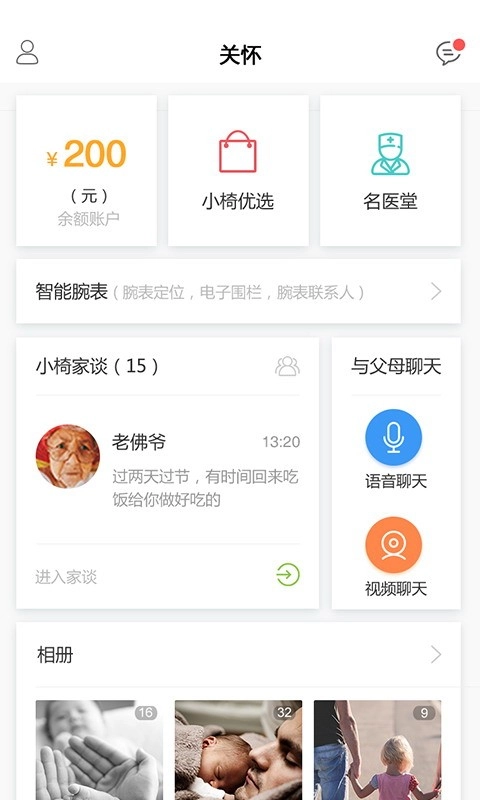 支持用户把自己生活里的精彩点滴分享给老人,让他们能了解你的日常。