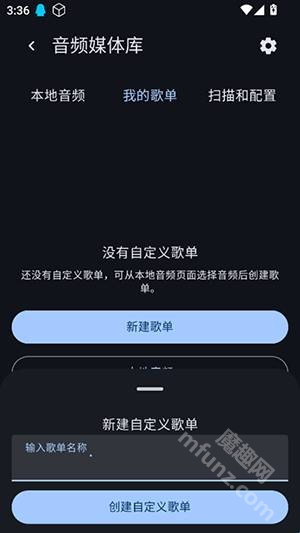 自定义创建歌单,通过“新建歌单”命名并管理本地歌曲