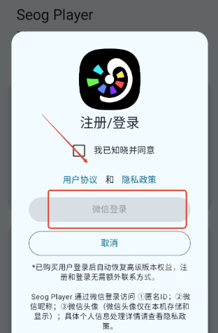 2、支持微信登录,勾选隐私协议,点击登录即可
