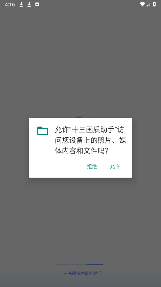 1、在本站安装十三画质助手打开,获取相关的权限。