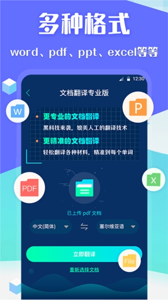 翻译全球聊是一款专业的翻译软件,许多用户或许需要一款实用性较强的翻译工具来处理文本里的外语内容,它支持文档翻译、文本翻译、图片翻译等多种翻译形式,同时兼容word、PDF、ppt、excel等多种文件格式。