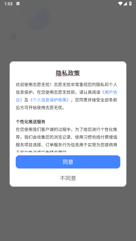 1、安装志愿无忧,同意相关的政策与协议。