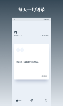 字醒致力于通过传递激励、顿悟、思考与反省,助力用户实现个人成长。它并非一款单纯的语录推送工具,而是一个能引导深度思考的平台。每日,字醒都会用心甄选一句富有启发性的语录,内容覆盖人生哲理、情感爱情、职场成功、学习成长等多个领域。这些语录绝非空洞的辞藻,而是凝聚着深思熟虑的智慧表达。