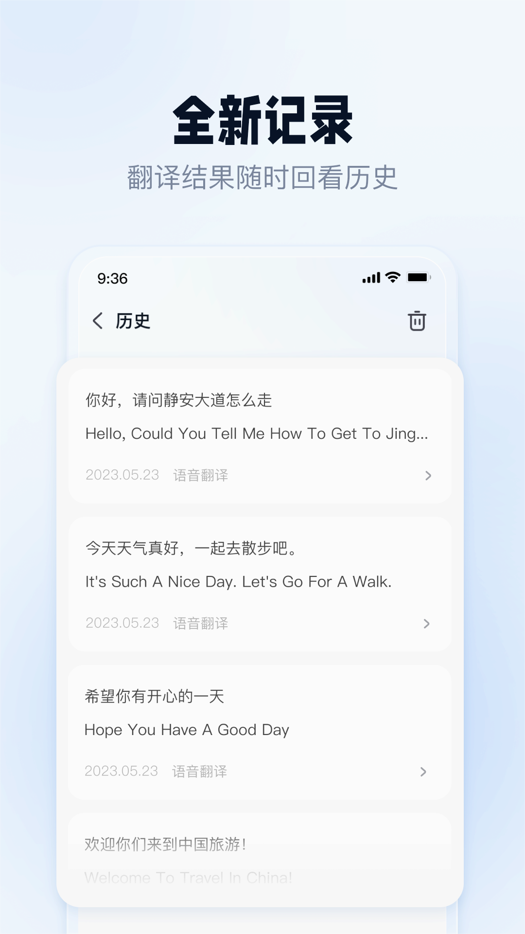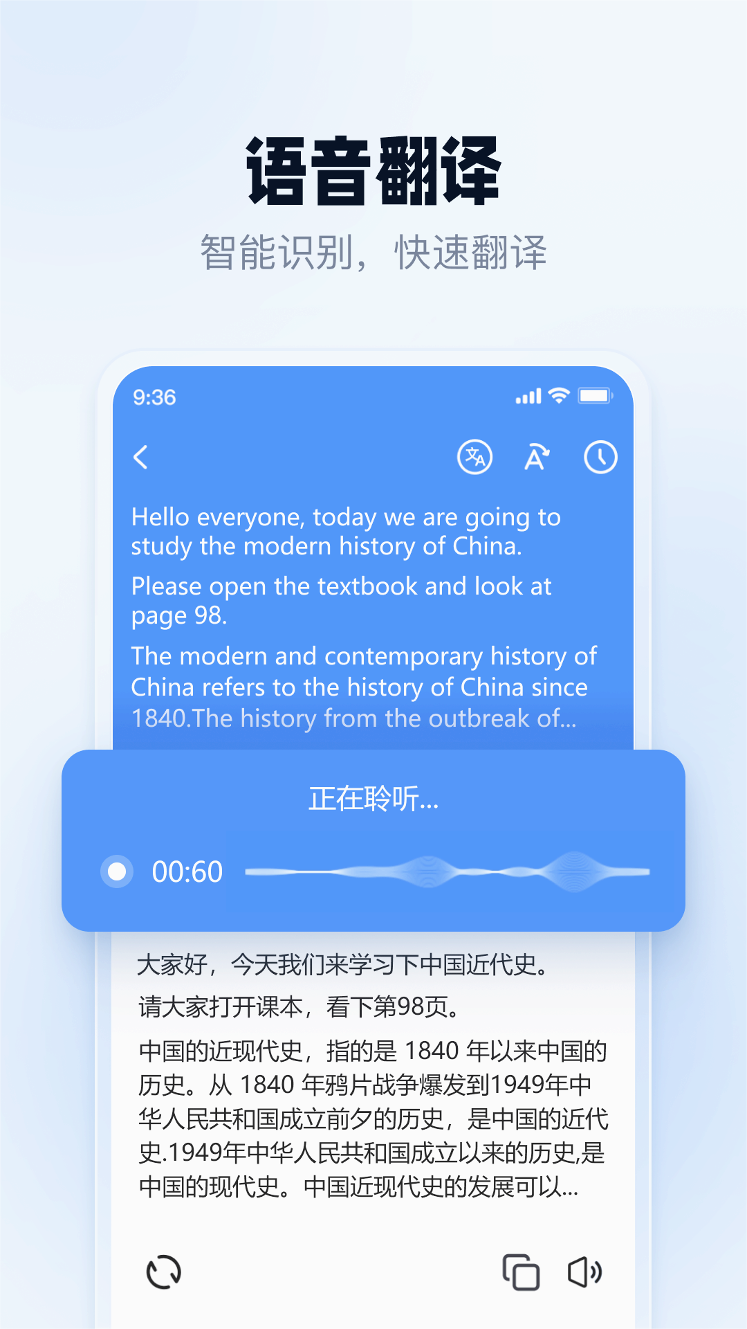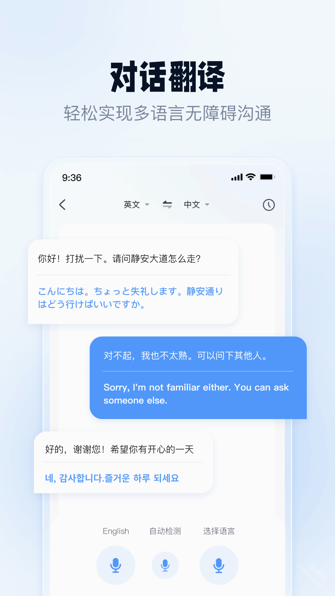 3、实时对话翻译:提供实时对话翻译功能,用户只需简单操作即可进行双向对话翻译,适用于多种场合。