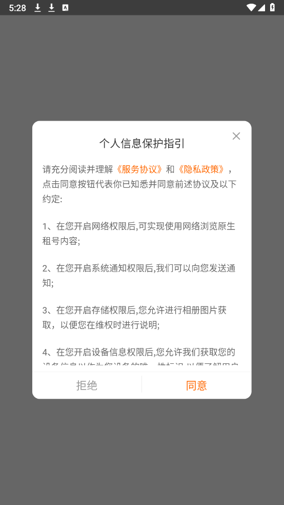 1、安装原生租号,同意相关的政策与协议之后打开。