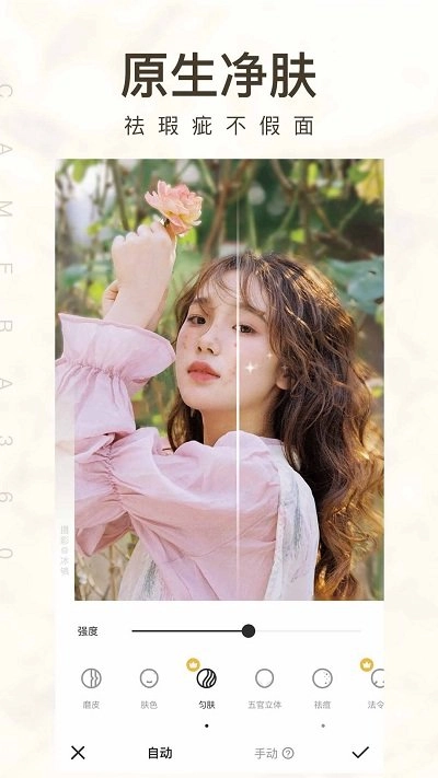 2、借助自动美颜算法,camera360软件只需一键操作,就能让您的图片呈现出最佳效果。