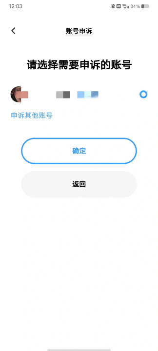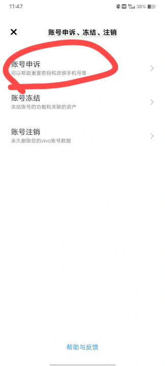 7、点击账号申诉