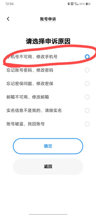 9、选择申诉原因,手机号不可用,修改手机号