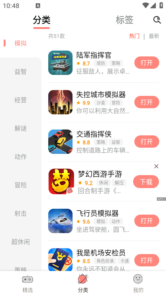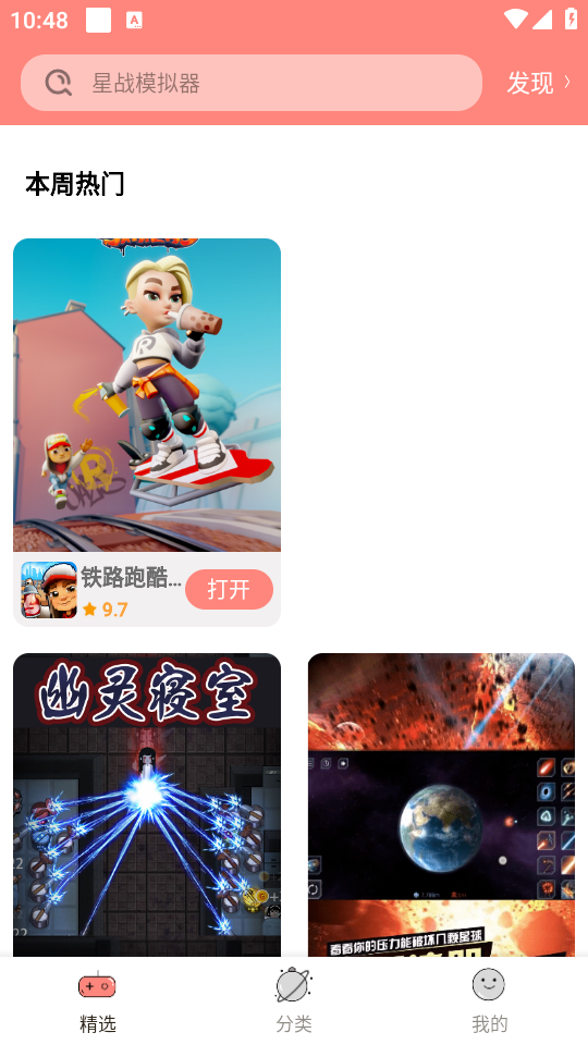 进入后,能看到精选和分类板块汇聚了海量游戏资源。