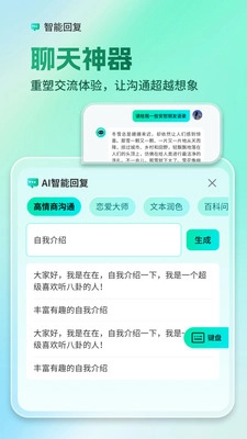 1、AI智能回复功能:借助人工智能技术,A能够对用户提出的询问与问题进行智能回应,从而提升打字的效率。