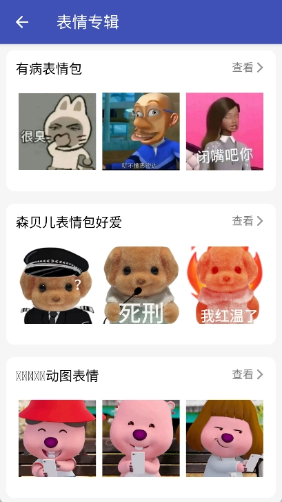 - 支持制作图片表情包,可自由发挥创意,如蘑菇头、熊猫头、红脸蛋等热门表情。