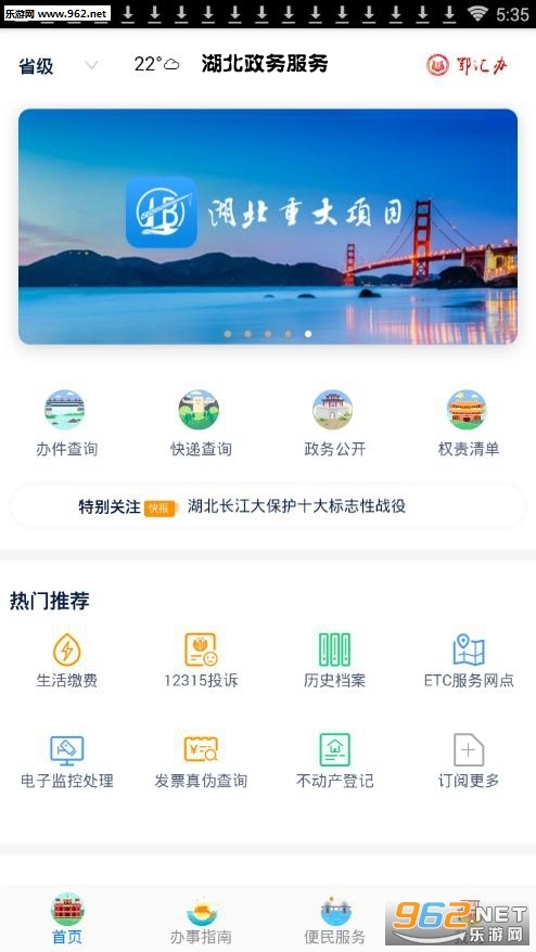 ,借助它,你能够为大量人员提供便捷的掌上服务功能,海量信息与丰富资源都能快速获取!您可以借助湖北政务服务平台开展事项搜索,查找各部门能够办理的事项,凭借法人或自然人身份在线办理相关事项,在线提交所需文档,从而完成线上办事流程。此外,还能通过该平台对各部门提供的可预约事项进行在线预约,既为群众带来便利,也无需再前往政务中心排队领取预约号。