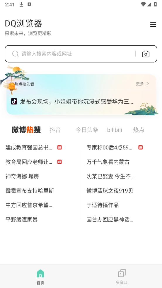 DQ浏览器是一款便捷实用的浏览器,能满足你搜索新闻头条、使用网址导航,以及浏览小说、观看视频等多种需求。只需输入关键词或网址,就能快速找到你想要的页面。你还可以根据自身使用习惯自定义设置页面,它将为你打造一个纯净无扰的上网环境。如果你正打算换一款浏览器,不妨体验一下DQ浏览器!