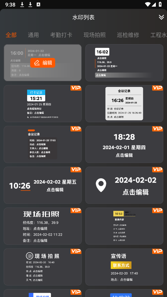 2、平台每日都会更新水印素材,大家可以自行查找使用,无论是工作场景还是各类打卡地点都适用,方便大家随时随地记录日常点滴。
