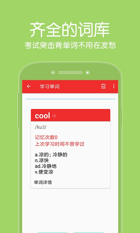 科学的测试方法搭配智能化的生词管理功能,你仅需反复进行学习测试,词汇量便会自然而然地提升到全新高度!