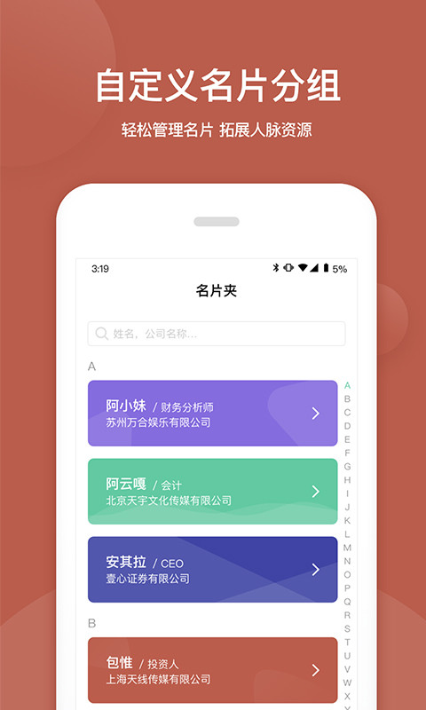 这是一款便捷实用、支持名片个性化设置的软件。在平台上,你可以尽情发挥创意,自由设计专属名片——我们的平台功能强大,不仅能一键生成各类名片特效,还支持多种名片自定义分类等实用功能。《特效名片王》,一款让你随心所欲进行名片DIY设计的应用软件,感兴趣的小伙伴们快来体验吧!