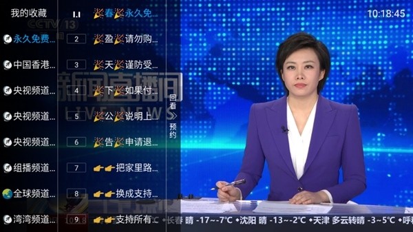 2.所以不喜欢这个电视频道,我们就可以打开左侧菜单进行频道切换,这里我们可以发现里面会有大量的电视频道等待你进行选择