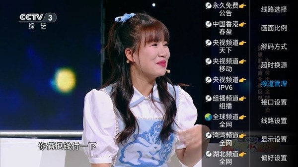 4.同时打开右侧的菜单栏,我们可以对其进行频道管理,接口设置等等方面的播放设置