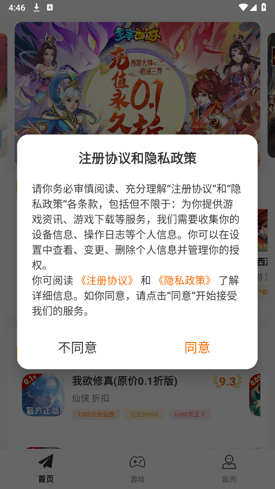 1、把一元折扣快爆安装完成后打开应用,同意对应的政策和协议。