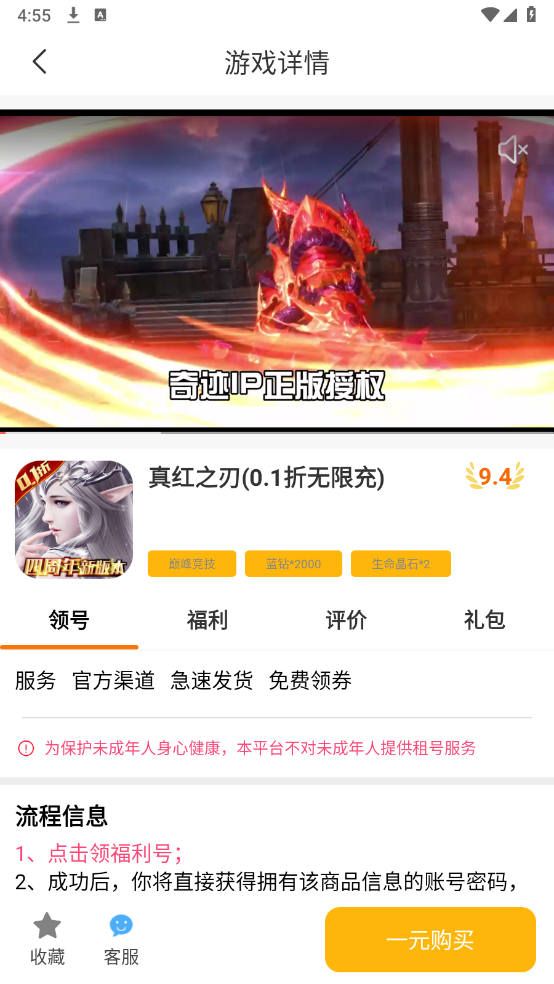3、点开想玩的游戏后,点击“一元购买”就能畅玩该游戏了。