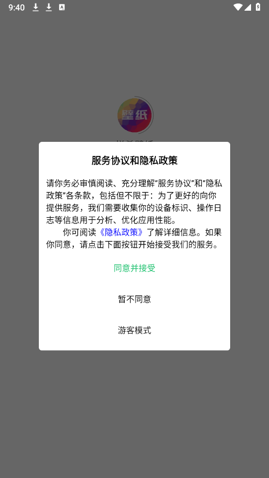 1、安装悦希壁纸,同意相关的政策与协议之后打开。
