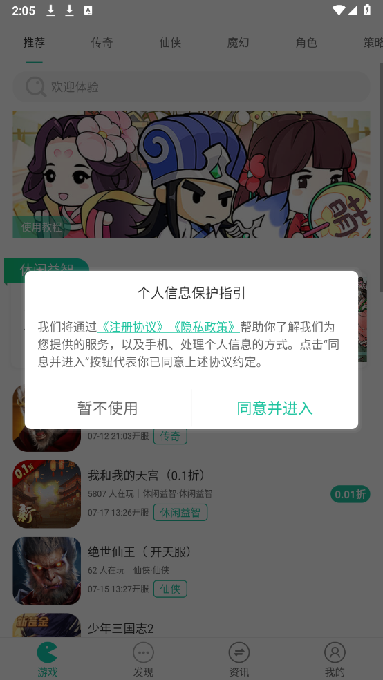 2、“游戏”与“发现”页面汇聚了丰富多样的游戏资源,涵盖卡牌、仙侠、角色等多种类型。