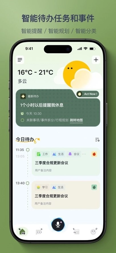 这是一款专注于待办提醒的语音AI助手,支持随时随地的语音交互,用户能借助它随时开启话题讨论。同时,它还具备便捷的待办创建功能,让用户可以轻松记录新事件,并添加更丰富的任务详情。