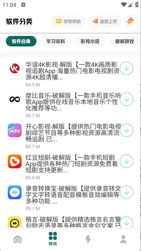2、软件页面里的软件都做了详细分类,影视类、学习类、漫画类等各类软件都能找到。