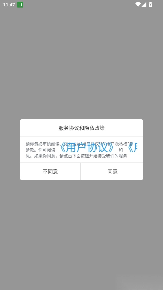 1.打开软件阅读“服务协议和隐私政策”点击“同意”进入