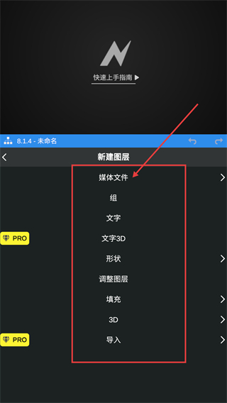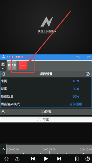 进入项目界面后,点击根节点旁边的加号按钮,即可打开新建图层的菜单,从中选择需要添加的内容类型。